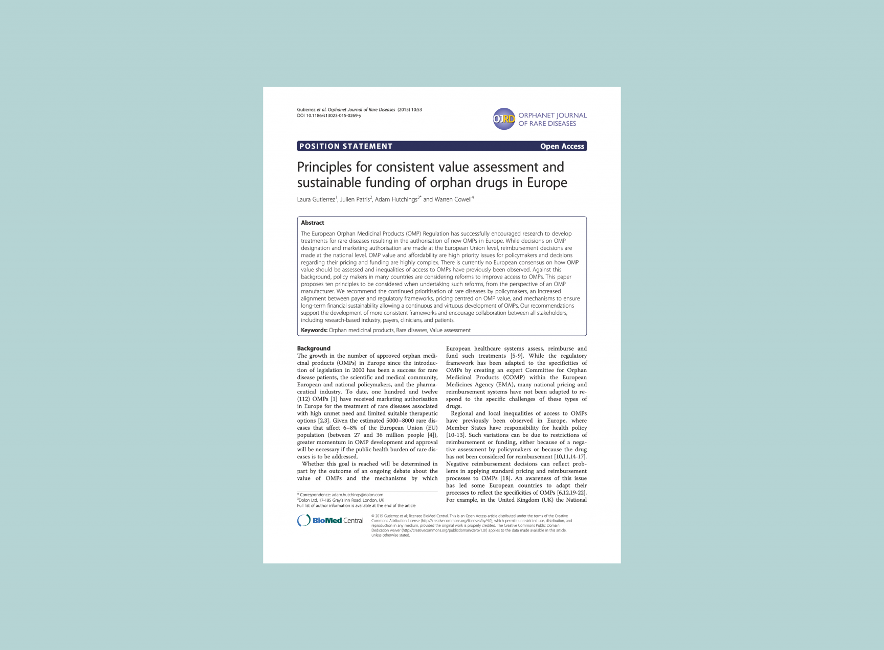 The European Orphan Medicinal Products (OMP) Regulation has successfully encouraged research to develop treatments for rare diseases resulting in the authorisation of new OMPs in Europe. While decisions on OMP designation and marketing authorisation are made at the European Union level, reimbursement decisions are made at the national level. OMP value and affordability are high priority issues for policymakers and decisions regarding their pricing and funding are highly complex. There is currently no European consensus on how OMP value should be assessed and inequalities of access to OMPs have previously been observed. Against this background, policy makers in many countries are considering reforms to improve access to OMPs. This paper proposes ten principles to be considered when undertaking such reforms, from the perspective of an OMP manufacturer. We recommend the continued prioritisation of rare diseases by policymakers, an increased alignment between payer and regulatory frameworks, pricing centred on OMP value, and mechanisms to ensure long-term financial sustainability allowing a continuous and virtuous development of OMPs. Our recommendations support the development of more consistent frameworks and encourage collaboration between all stakeholders, including research-based industry, payers, clinicians, and patients.