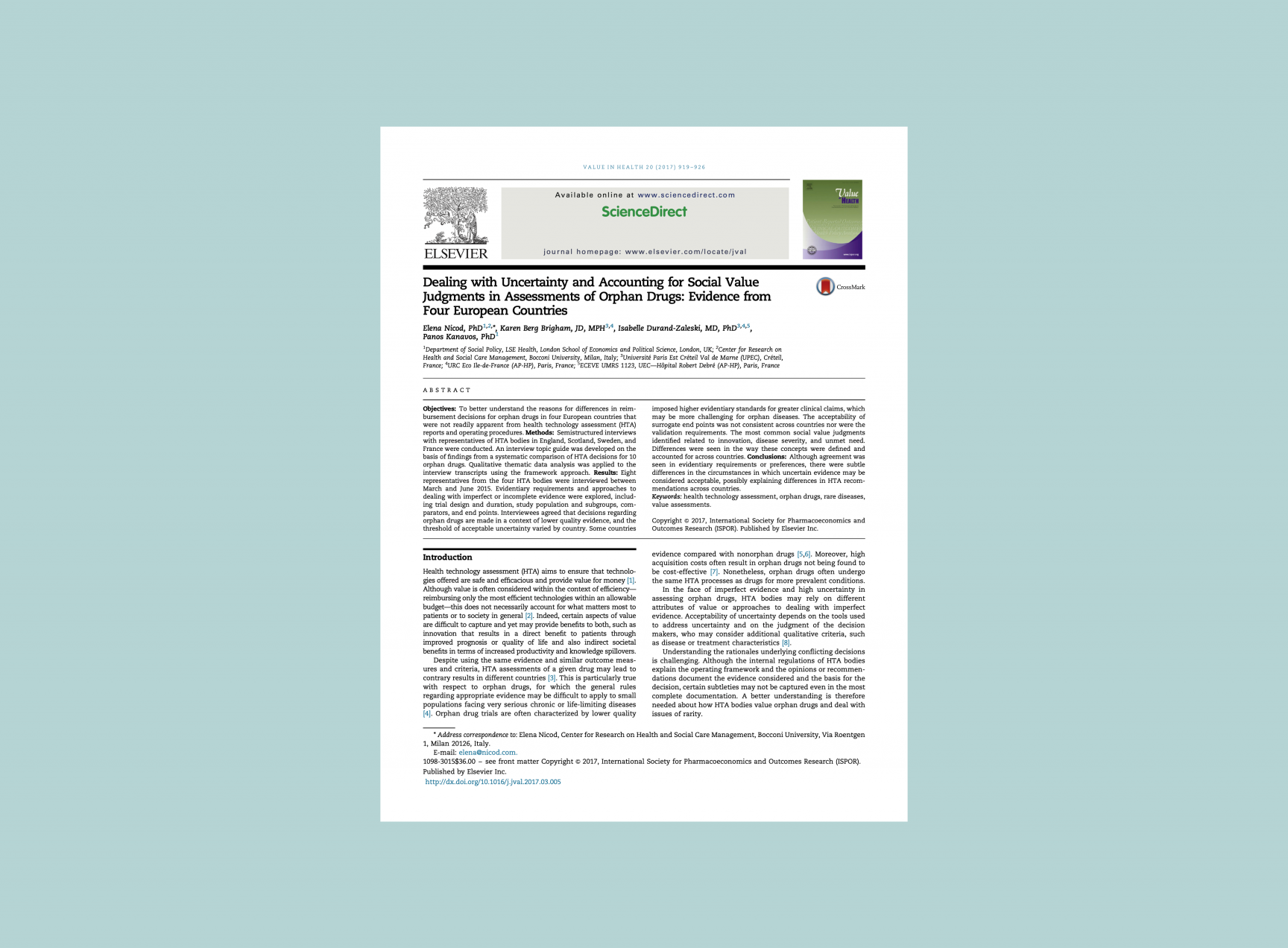 — Nicod E, Berg Brigham K, Durand-Zaleski I, Kanavos P.