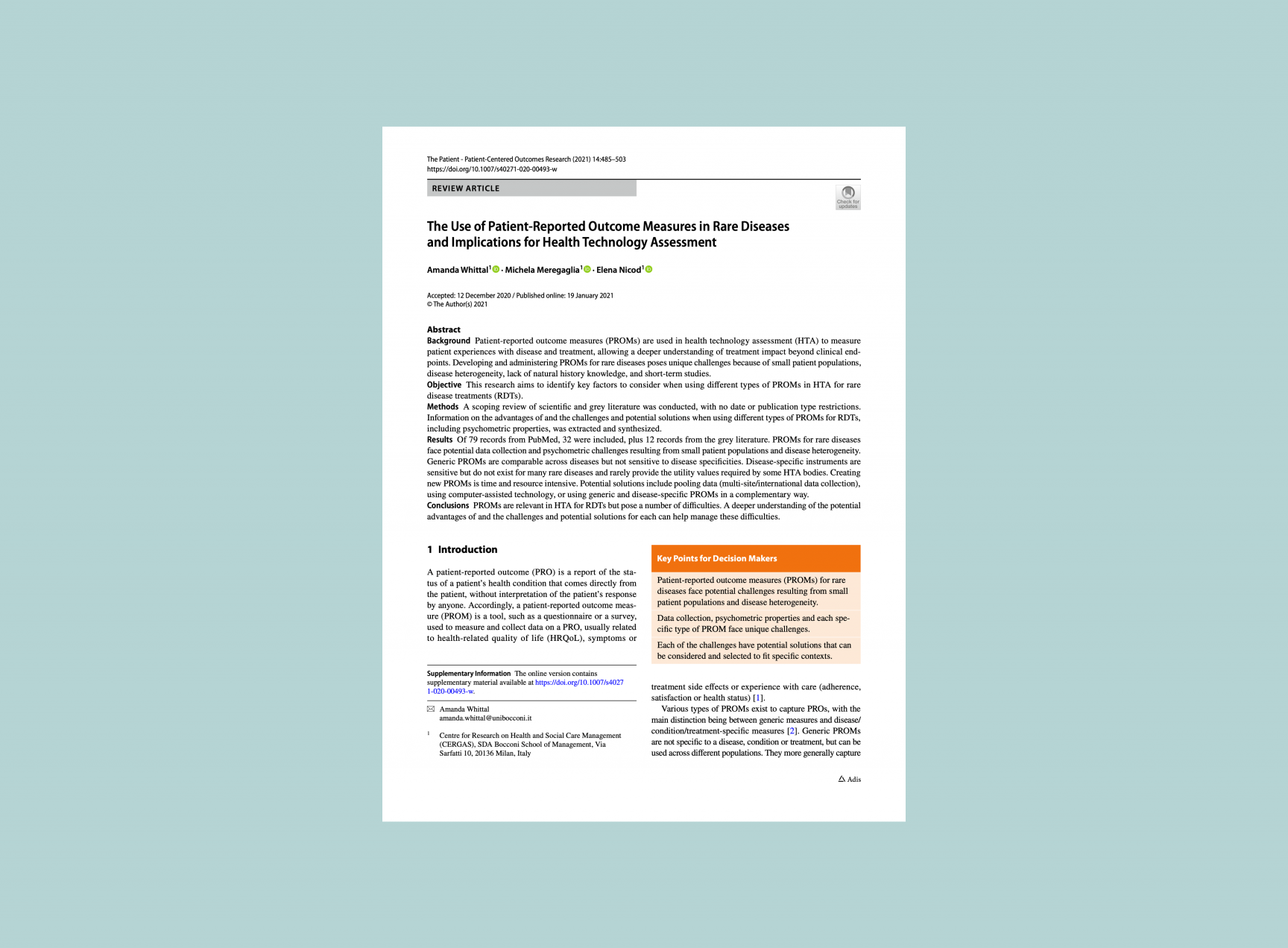 — Whittal A, Meregaglia M, Nicod E.