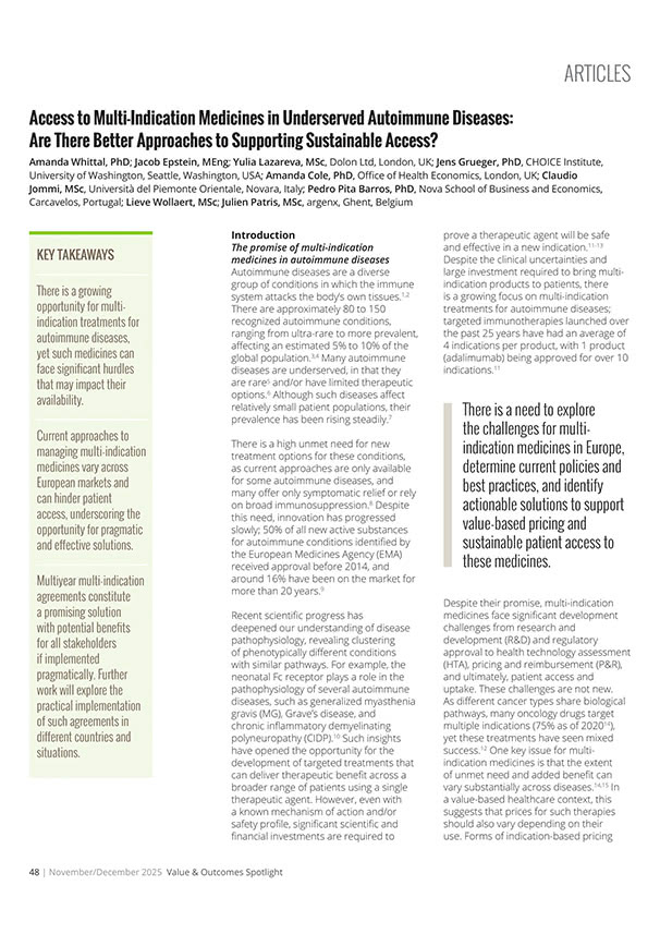 Value & Outcomes Spotlight – Access to multi-indication medicines in underserved autoimmune diseases: are there better approaches to supporting sustainable access?