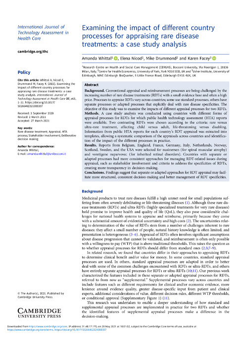 Examining the impact of different country processes for appraising rare disease treatments: a case study analysis. International journal of technology assessment in health care. 2021;37(1).